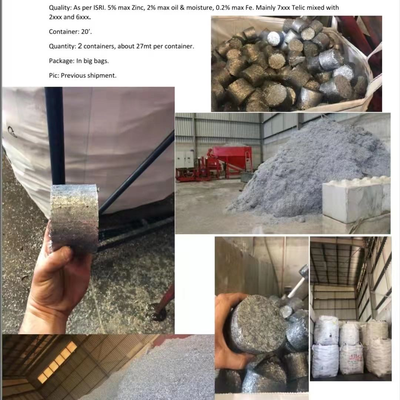 货源地:以色列 铝屑压块 成分:大约70%的7xxx,其余为6xxx和2xxx。 不超过5%的锌,2%油和水分,铁不超过0.2% 包装:压块散装 两柜,每柜约27吨 付款方式:预付20%,余款在收到发货单证扫描件5个工作日付