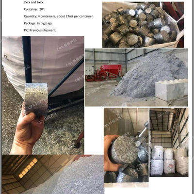 温馨提示:平台私下交易请注意资金安全!(CRA客服电话:18566395007)铝屑压块 大约70%的7xxx,其余为6xxx和2xxx。 不超过5%锌,2%的油和水分,铁不超过0.2% 数量:4个20尺集装箱,每柜约27吨 包装:压块散装 压块尺寸:40x40x40-60cm 图片:以前的装货图片 货源地:以色列